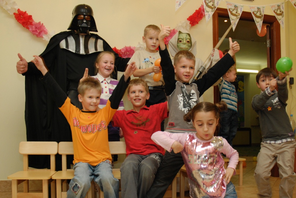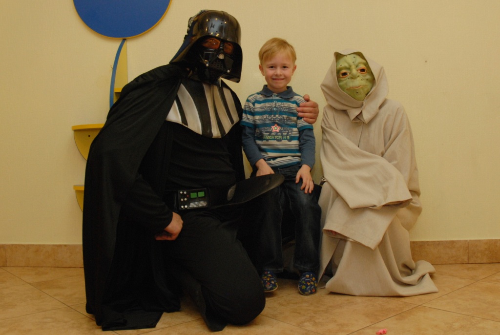 Наконец-то в Галактике наступил мир! Теперь джедаи добра и зла вместе - мастер Йода и Дарт Вейдер вдвоем защищают Галактику. Они прилетели на праздники к ребятам, когда узнали про день рождения именинника. Звездные герои решили приехать именно к имениннику, чтобы научить его добру и злу, сражаться на лазерных мечах и рассказать о бесконечной звездной вселенной. Все это сценарий детского дня рождения "Звездные Войны".